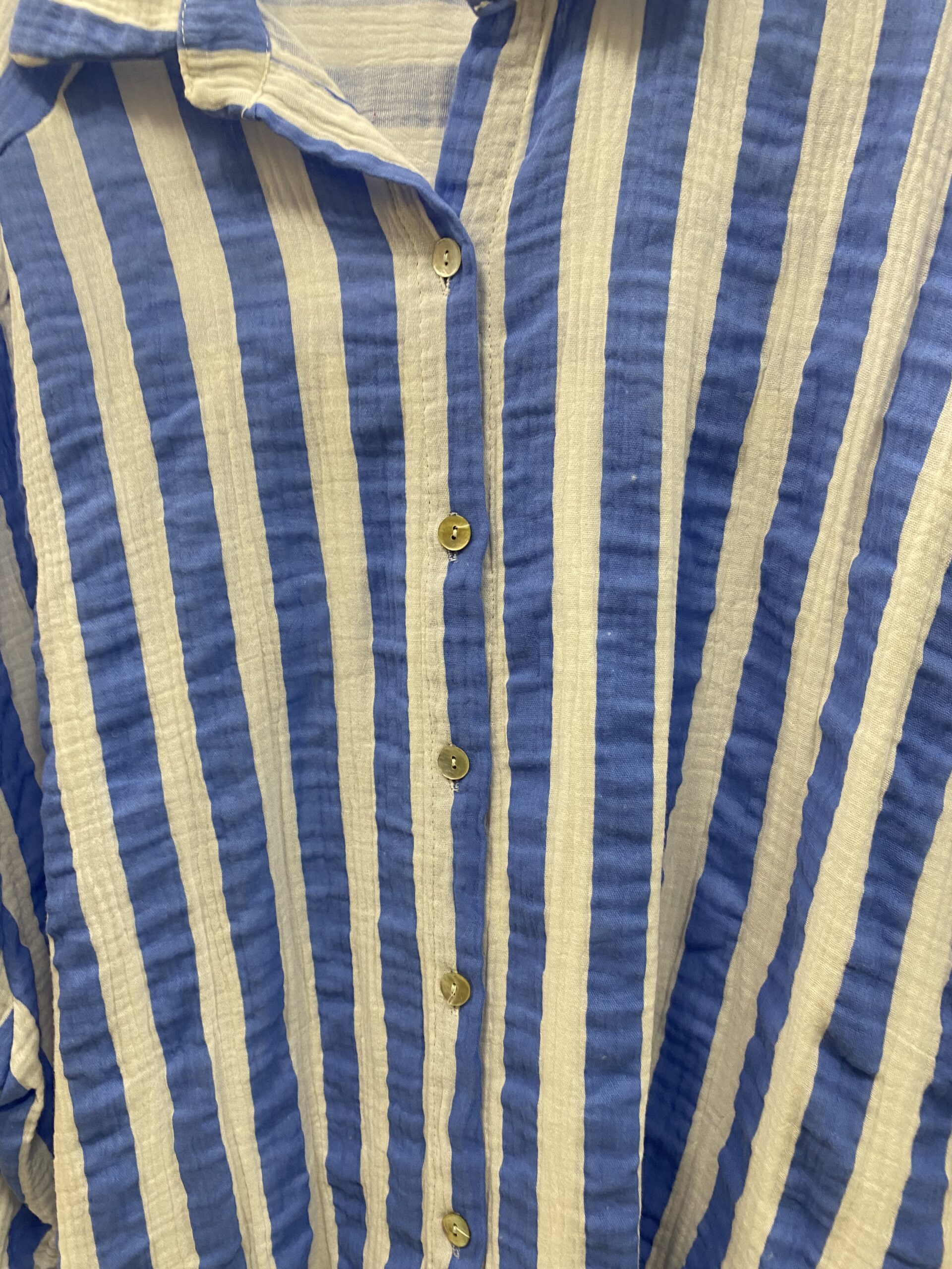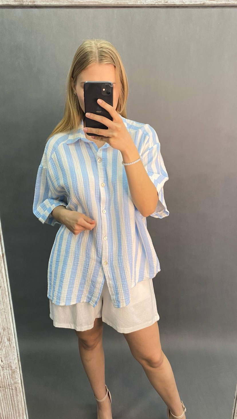 Oversizowa, muślinowa koszula w paski. Pasuje na rozmiar od XL do XXXL.  Doskonała na eskapady.