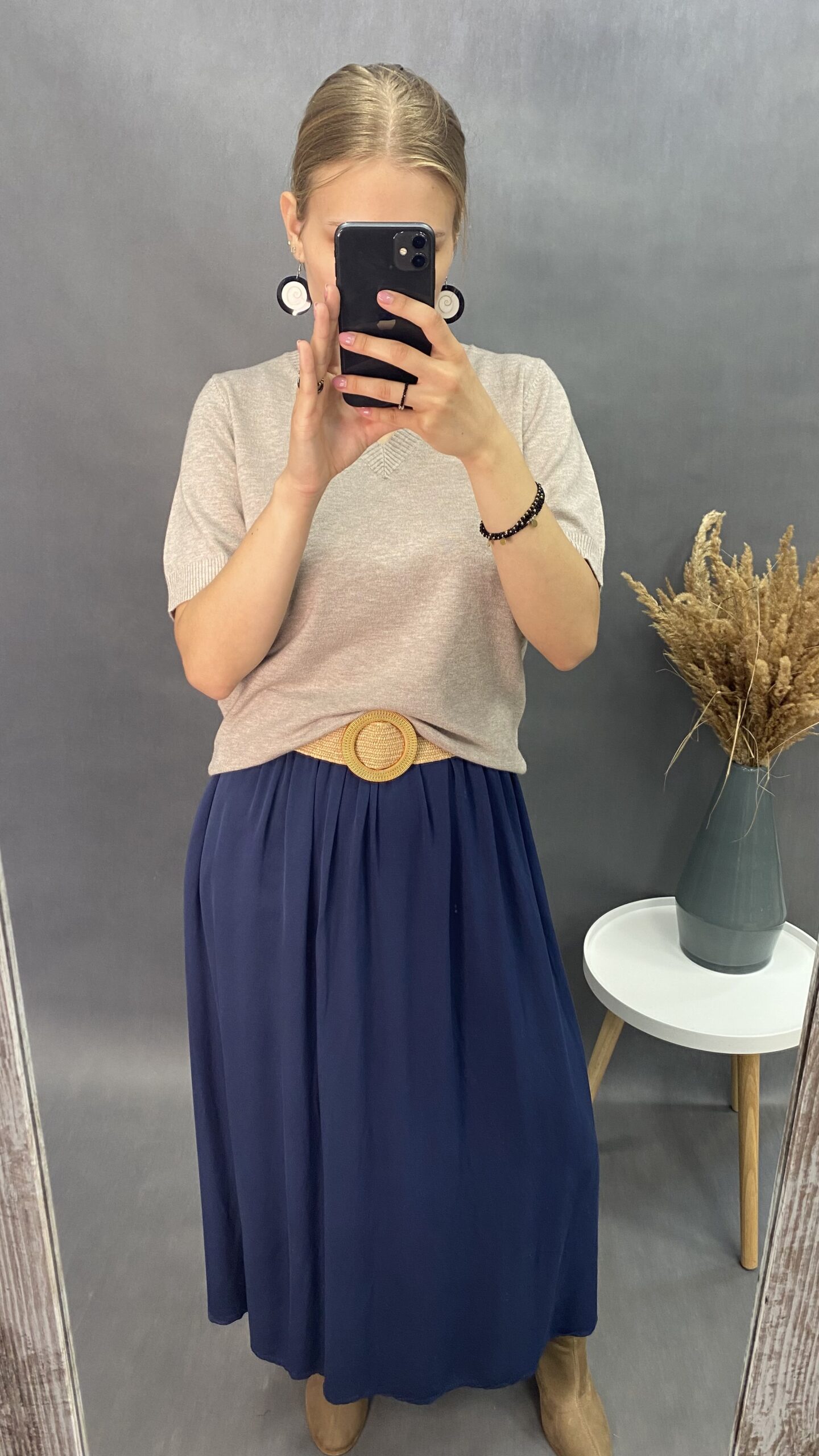 Zwiewna spódnica z plecionym paskiem. Jeden rozmiar (pasuje od M do XXL). Doskonały model na lato.